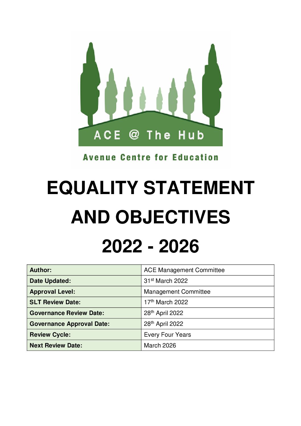 Equality Statement and Objectives 2022 – 2026