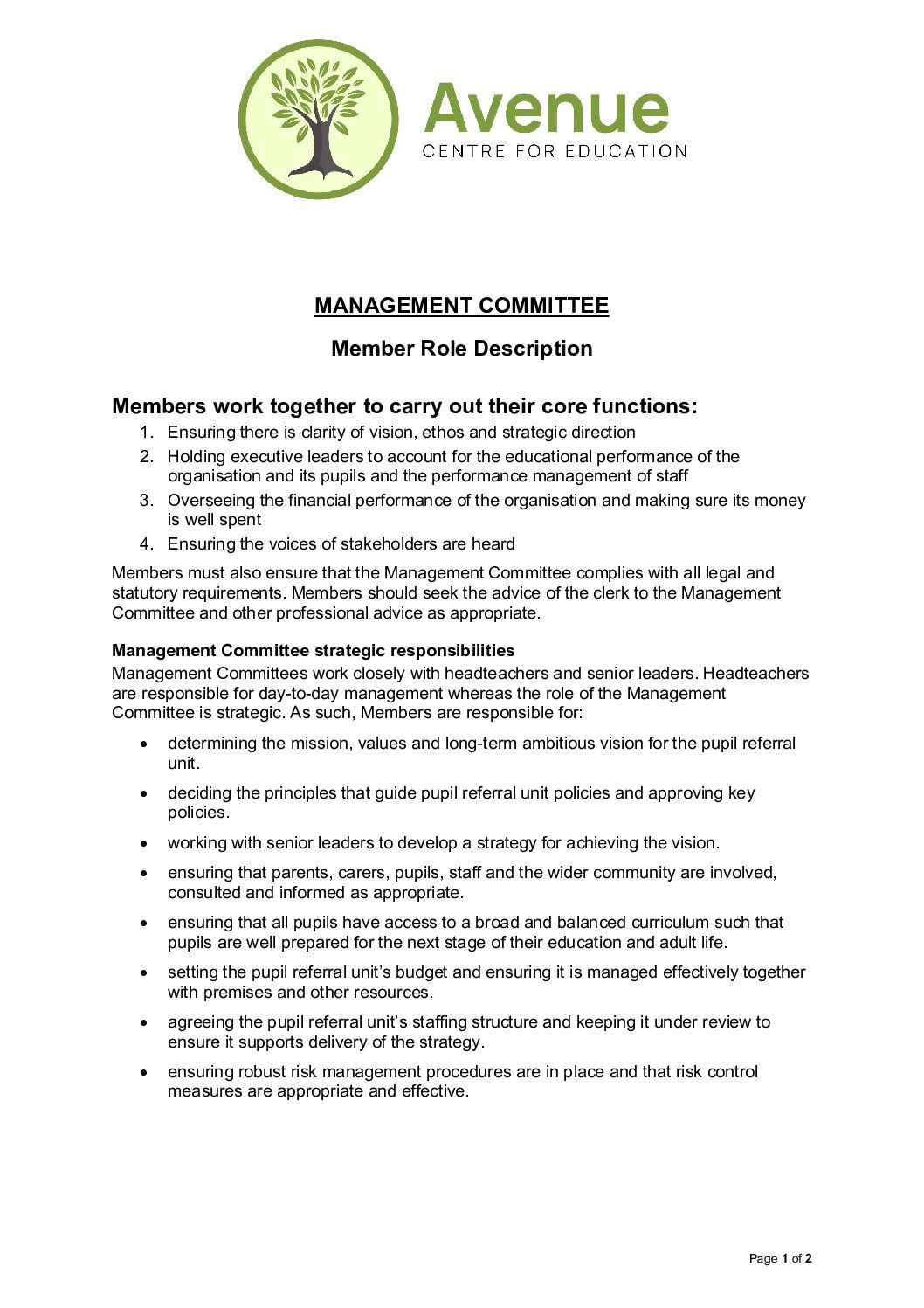 Governance: Member Role Description 2025 – 2026